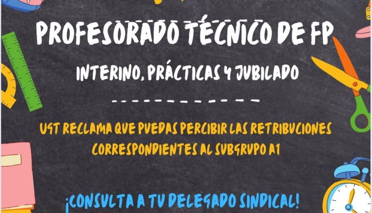 UGT reclama que el Profesorado Técnico de FP interino, en prácticas y jubilado pueda percibir las retribuciones del A1