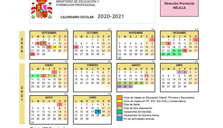 En el día de hoy hemos recibido por parte de la Dirección General de Planificación Educativa lla Resolución por la que se establece el calendario escolar para el curso 2020/2021 en los centros docentes no universitarios en Melilla. Puedes descargarlo aquí.