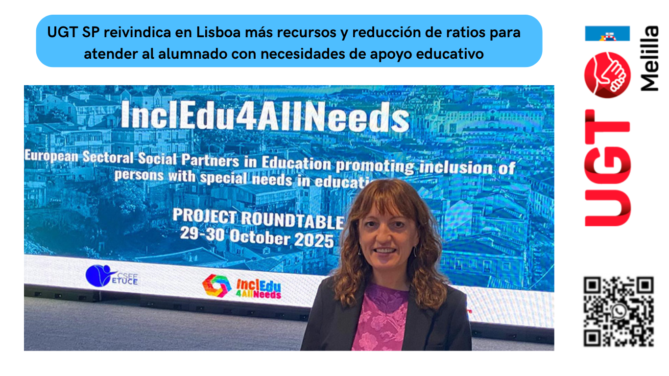 El Sector de Enseñanza de UGT Servicios Públicos ha reivindicado en un encuentro europeo celebrado en Lisboa la necesidad urgente de incrementar los recursos humanos y materiales en los centros educativos, así como reducir las ratios de alumnado por aula, para garantizar una atención educativa adecuada a todo el alumnado, especialmente a quienes presentan necesidades específicas de apoyo educativo (NEAE) y necesidades educativas especiales (NEES).